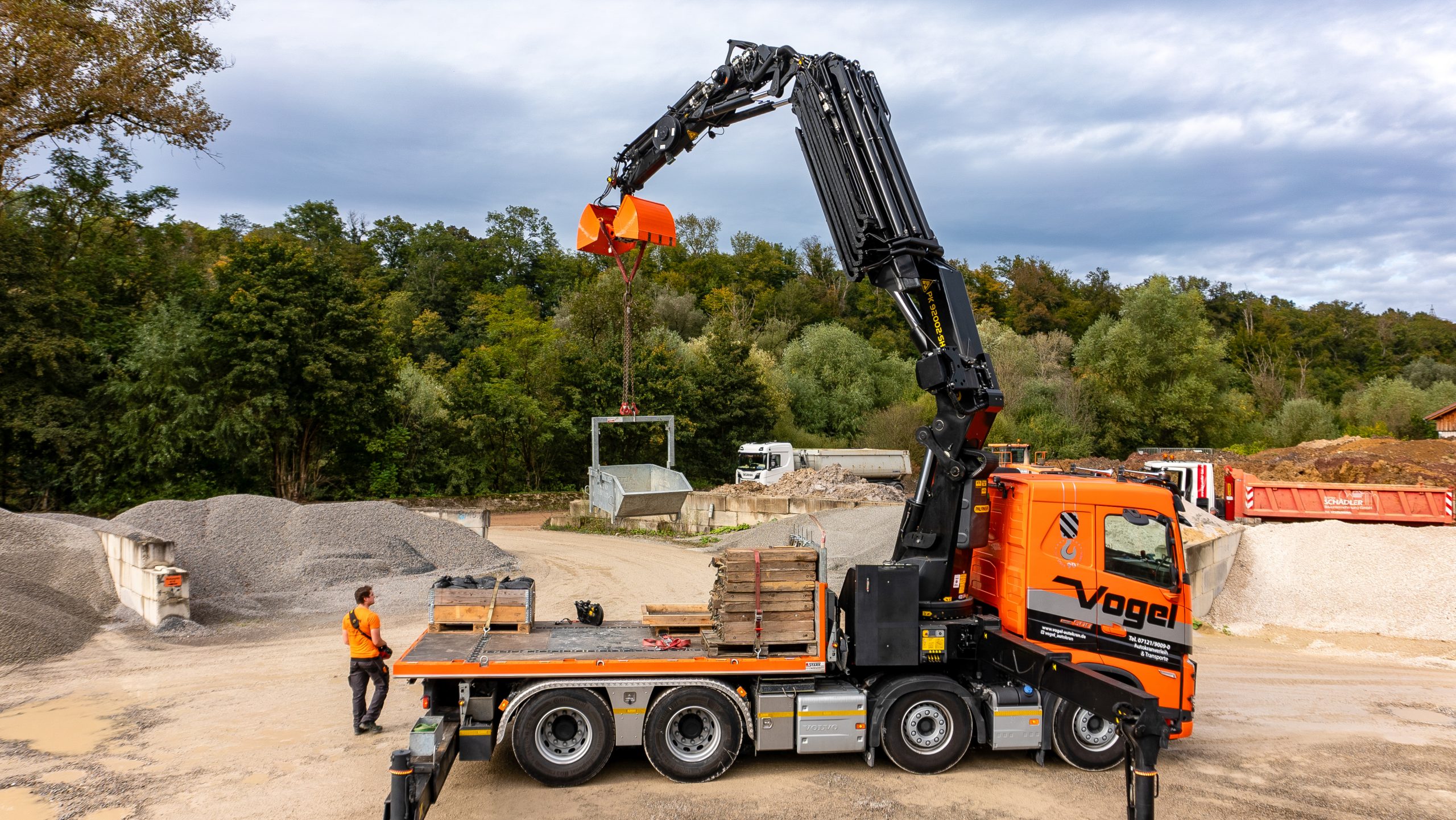 Mit dieser Kombination aus Kran und Schalengreifer lassen sich Schüttgut wie Kies, Sand, Erde oder Substrat, Palettenmaterial, Pflanzen oder Gehölz direkt aufnehmen, transportieren und präzise verteilen. Ob enge Baustellen, große Transportaufgaben oder fein verteiltes Schüttgut, der Palfinger Ladekran mit Schalengreifer bietet eine schnelle, effiziente 2-in-1-Lösung für nahezu jede Herausforderung auf der Baustelle.