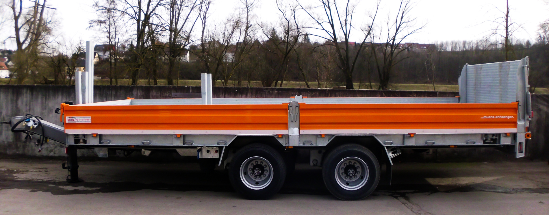 - Ladefläche des Anhängers: 6,4 x 2,4 m (LxB), mit abnehmbaren Bordwänden