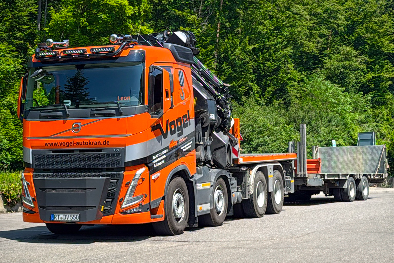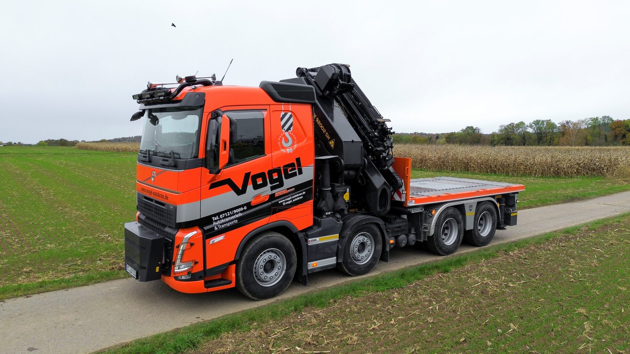 Der Volvo LKW mit Palfinger Ladekran ermöglicht effiziente Transport- und Hebearbeiten für schwere Lasten und Maschinen.