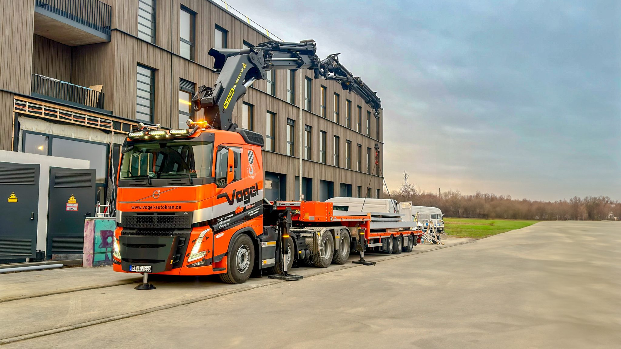 Der Volvo LKW und der 2-Achs-Anhänger bieten eine flexible und leistungsstarke Lösung für den Transport schwerer Lasten und großer Geräte. Dank des Palfinger Ladekrans sowie durchdachter Transportoptionen sind selbst anspruchsvolle Projekte problemlos umsetzbar.